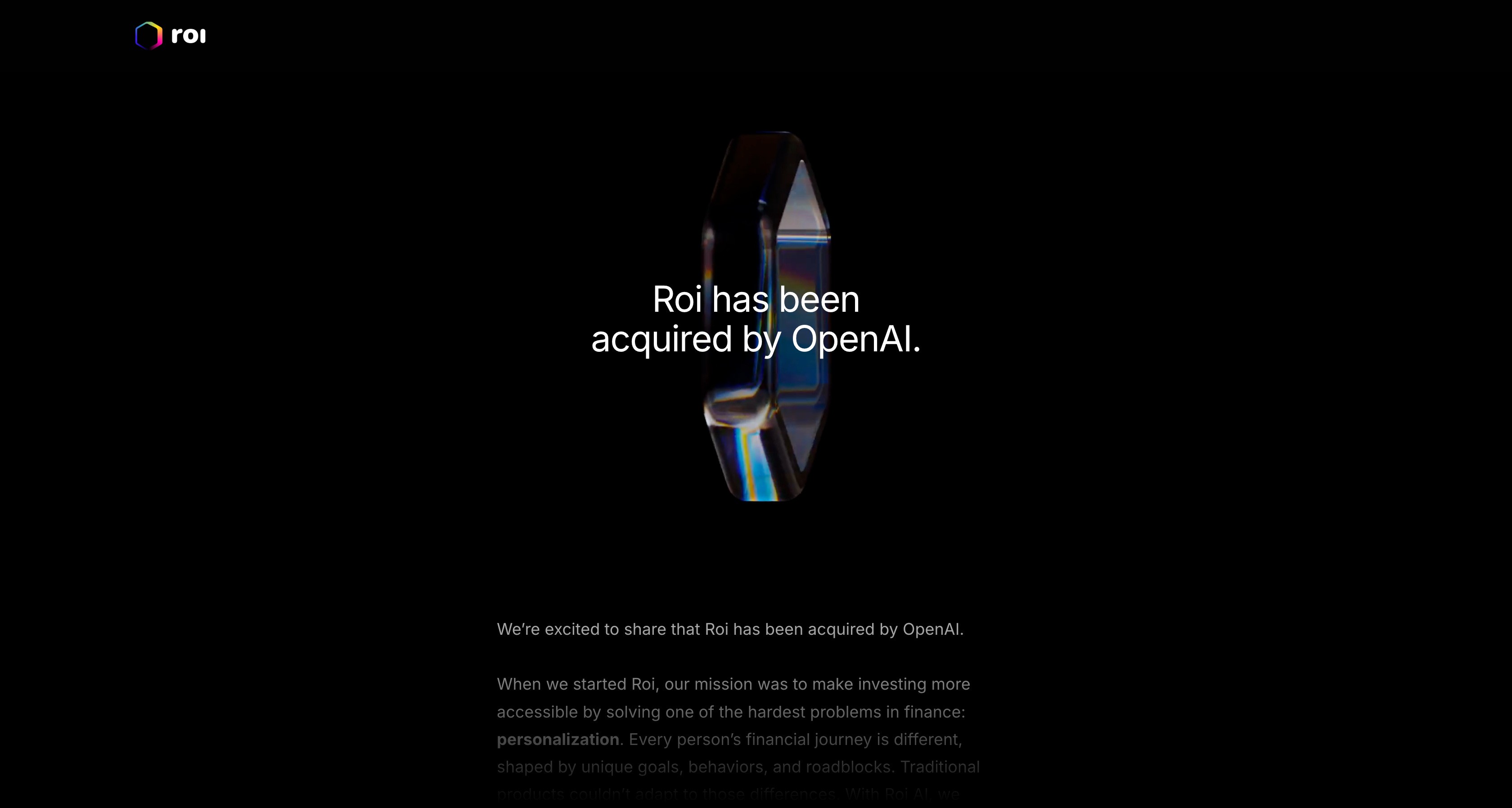 🤖 OpenAI's acquisition of Roi signals a clear move toward personalisation as the next frontier for AI. Roi's expertise in finance companions could translate into AI systems that learn individual goals and contexts. Roi officially ended operations on 15 October 2025, carrying forward the belief that everyday products will no longer be static or predetermined but adaptive, deeply personal companions that understand us, learn from us, and evolve with us. Roi was a bright startup I noticed earlier this year, and now they will work for OpenAI.